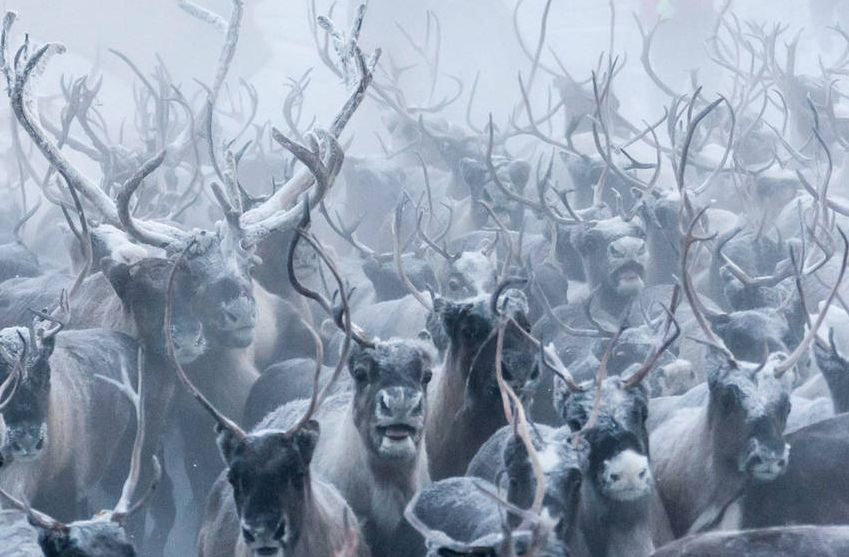 為了找到隱藏在堅(jiān)冰下的地衣和青草,北極鹿會(huì)用鼻子和蹄子拼命挖掘。馴鹿和北極馴鹿都要經(jīng)歷漫長(zhǎng)的大遷徙,有時(shí)遷徙距離甚至能達(dá)到1000千米。不同的是,人工馴養(yǎng)的馴鹿在遷徙時(shí),還有當(dāng)?shù)氐哪撩裣喟椤?/p>