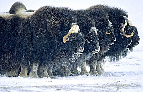 在北極地區(qū),無論寒風(fēng)多么刺骨,不管暴雪如何肆虐,有且僅有一種強(qiáng)大的動(dòng)物永遠(yuǎn)不需要住所來爭(zhēng)風(fēng)擋雨——麝牛。在交配季節(jié),雄性的麝牛的身上會(huì)散發(fā)出來類似麝香的強(qiáng)烈氣味,這也是它們名字的來源