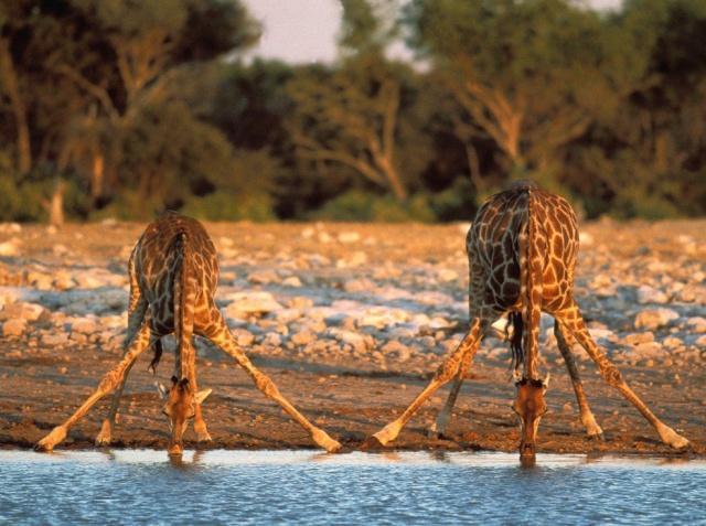 長頸鹿的牙齒為原始的低冠齒,它所進(jìn)食物甚至不能以草為主食,只能以樹葉為主食。而他的舌頭發(fā)育較長,足有50CM之長,長頸鹿總是先用自己的舌頭來接觸食物,尤其是喜歡吃合歡樹的嫩葉,因?yàn)槟廴~足夠的話長頸鹿就不用冒著生命危險來喝水了。畢竟他的喝水姿勢你們都懂得!