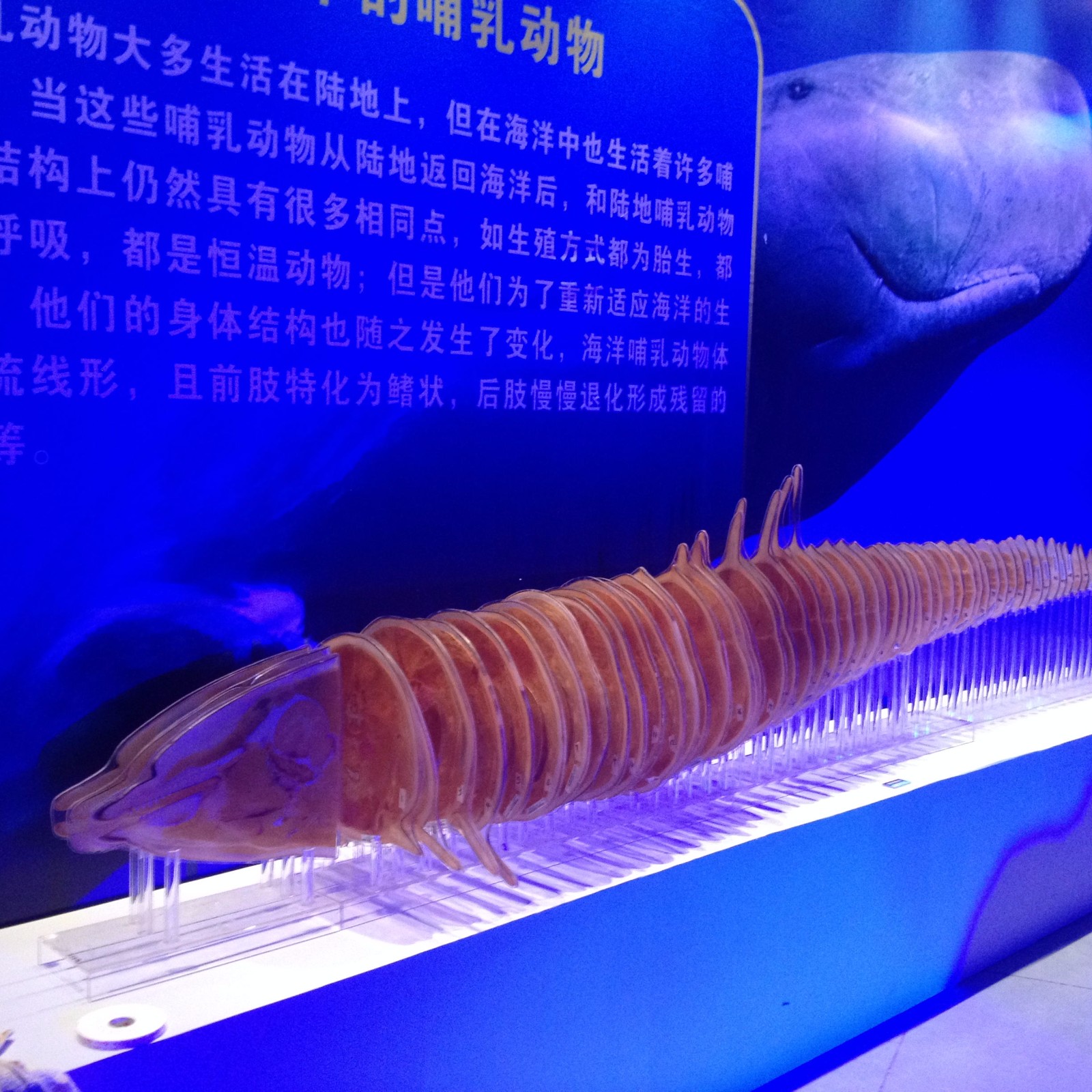 “海洋精靈”主題展以大中型海洋動物塑化標(biāo)本為載體,將海洋知識與趣聞貫穿于展覽始終,帶領(lǐng)廣大觀眾對蔚藍(lán)海洋的珍奇生物進(jìn)行探索。展覽不僅呈現(xiàn)出鮮為人知的珍、奇、特的海洋生物外觀,還將探索其內(nèi)部世界。通過直觀外形展示和內(nèi)部結(jié)構(gòu)對比的方式給參觀者以震撼。展覽通過比較解剖學(xué)的方法,揭示其從海洋到陸地,又從陸地返回海洋的發(fā)展歷程,是一本活的生物學(xué)教科書。展覽展品內(nèi)容豐富、展示方式獨特,包括依賴海洋而生的魚類、爬行類、鳥類和哺乳類動物等最具創(chuàng)意的展示,是目前世界上最系統(tǒng)、最全面的展示海洋動物內(nèi)部世界的科學(xué)殿堂。