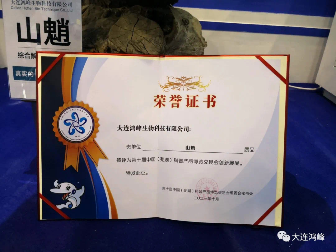 2021年10月24日,在第十屆中國(蕪湖)科普產(chǎn)品博覽交易會(huì)優(yōu)秀科普產(chǎn)品評選會(huì)上,大連鴻峰生物科技有限公司的展品——山魈,榮獲本屆博覽會(huì)創(chuàng)新展品獎(jiǎng)。