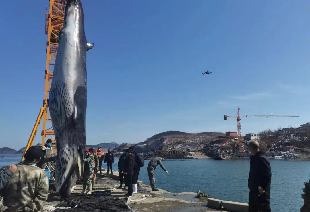城市直通車 八米長鯨魚擱淺大連海灘