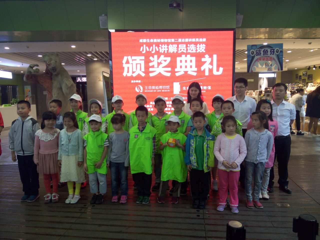 選拔于2016年5月22日下午成都生命奧秘博物館舉辦了盛大的小小講解員頒獎典禮。博物館館長吳軍、副館長文勇及頒獎嘉賓鄭德賢等見證者分別為:一等獎得主王舒雅,二等獎得主陳晗、韓家池,三等獎得主吳雨菲、廖家民、楊梓瀟,及多位優(yōu)秀獎得主,共計(jì)30人次頒發(fā)了獎項(xiàng)。
