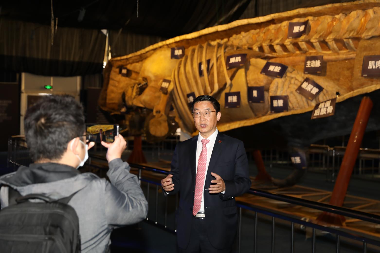 2020年5月29日下午14時,《巨鯨傳奇》特展新聞發(fā)布會在金石灘金石文化博覽廣場召開,大連市公共文化服務(wù)中心副主任楊穎、大連金石灘國家旅游度假區(qū)管委會副主任譚向陽,大連自然博物館館長趙博、副館長高春玲、大連醫(yī)科大學(xué)解剖教研室主任,生命奧秘博物館創(chuàng)始人隋鴻錦教授、大連金石灘旅游集團有限公司副總裁劉宇、大連鴻峰生物科技有限公司副總經(jīng)理馬學(xué)偉等領(lǐng)導(dǎo)嘉賓出席發(fā)布會。