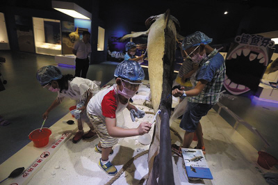 成都20名孩子夜游生命博物館 認(rèn)識(shí)鯨鯊海獅標(biāo)本
